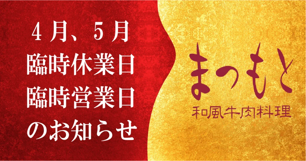 平素より当店をご愛顧いただきまして、ありがとうございます。メニュー価格変更のお知らせです。 メニュー価格変更のご案内 <2025年9月3日(水)より> 和風牛肉料理まつもとでは、2020年2月7日の開業より、本物の黒毛和牛の美味しさをお届けする為、厳選... -