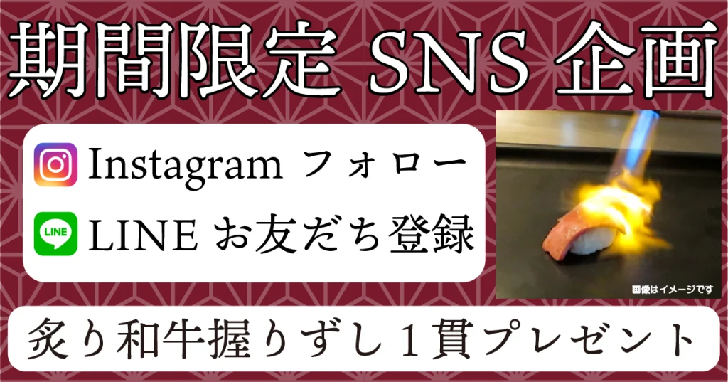期間限定SNS登録で炙り和牛握りずしプレゼント